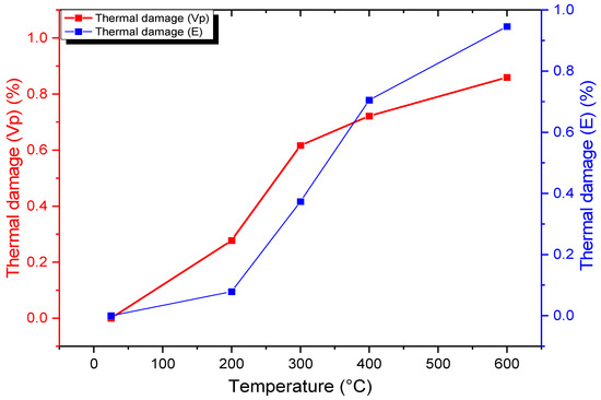 - Up to 300 °C, the porosity, crack density, thermal damage, and density reduction ratio progressively rose before drastically increasing beyond this point. Similarly, the uniaxial compressive strength climbed to 300 °C, and then it drastically dropped linearly as the temperature rose. In contrast, there was a gradual reduction in the elastic modulus and P-wave velocity as the temperature reached 200 °C, followed by a significant decline. Hence, this study revealed the following two mutation temperatures in the evolution of granodiorite mechanical and physical properties: 200 and 300 °C. After that, all metrics massively deteriorated;