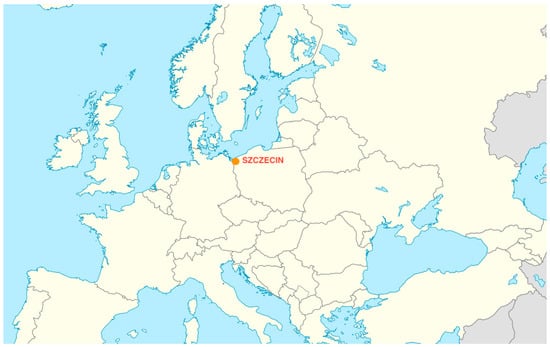 Location of Szczecin in Europe. Source: Author’s work based on the map created by Commons user Alexrk2, CC BY-SA 3.0 <https://creativecommons.org/licenses/by-sa/3.0>, via WikimediaCommons.