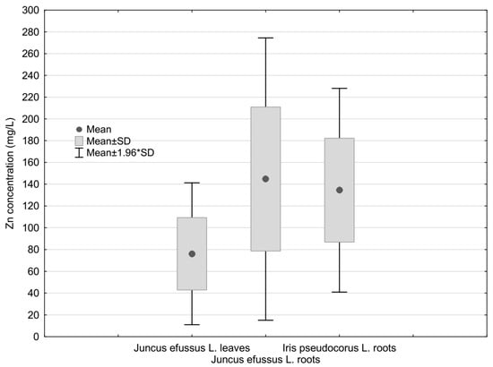 - Matthews, D.J.; Moran, B.M.; Otte, M.L. Zinc tolerance, uptake, and accumulation in the wetland plants Eriophorum angustifolium, Juncus effusus, and Juncus articulatus. Wetlands 2004, 24, 859–869. [Google Scholar] [CrossRef]