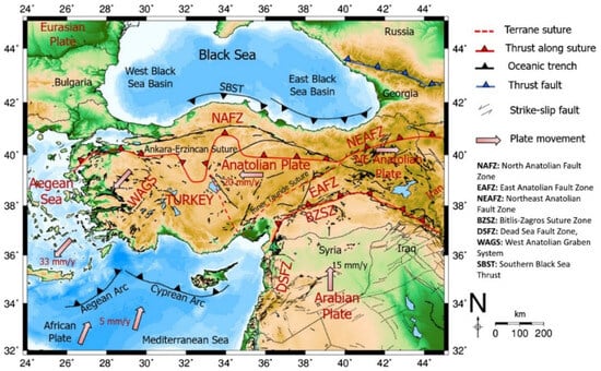 Tectonic map of Türkiye and surroundings [64].