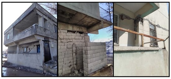 - Işık, E. Structural failures of adobe buildings during the February 2023 Kahramanmaraş (Türkiye) Earthquakes. Appl. Sci. 2023, 13, 8937. [Google Scholar] [CrossRef]