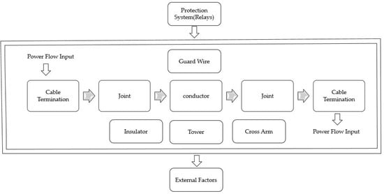 The reliable operation of these critical components is essential for the continuous and efficient transmission of electricity from the high-voltage networks to the medium-voltage distribution systems, ultimately ensuring a reliable and uninterrupted power supply to the end consumers. Protective relays are used to monitor the transmission system and detect any abnormal operating conditions or faults. They act as sensors and provide signals to the protective devices to initiate protective actions, such as tripping circuit breakers or activating alarms. The configuration of the transmission system is designed to ensure redundancy and reliability. Multiple parallel circuits are often employed to minimize the impact of failures or maintenance activities on the overall system. This redundancy allows for the continuous delivery of power even if one circuit or component experiences a failure. Figure 2 shows the schematic of a power transmission network process.