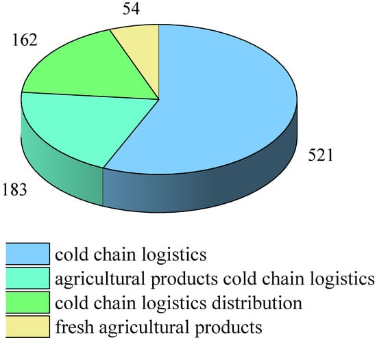 Based on the keywords used 1787 relevant articles were obtained from the above mentioned database. After repetition and classification, as shown in Figure 3, the most published topic is cold chain logistics, with 521 published articles. This is followed by fresh agricultural products, with 183 articles, and includes 162 articles on cold chain logistics distribution and 54 articles on agricultural product logistics research. This indicates a strong interest among scholars in cold chain logistics.
