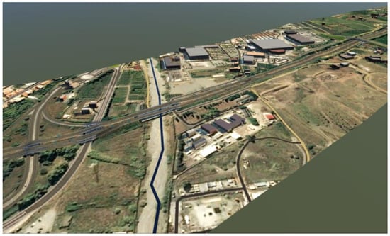 The proposed approach aims to address two of the most important BIM uses: “visualization” and “virtual inspection of constructions”. Then, the first step is the construction of a complete infrastructure information model, including the territorial, geographical, and satellite information. Considering the testing environment (i.e., Autodesk® Infraworks®) this was preliminarily defined through the Model Builder cloud service that imports into the BIM database a series of data layers related to the specified area. This solution, despite being simplified and with a medium accuracy, allows the analyst to derive a first model of the infrastructure and of the external context, evidencing with acceptable approximation the entire existing road and rail network, as well as other contextual elements such as buildings, rivers, etc. All these elements are linked to a georeferenced digital elevation model (DEM) and covered with satellite images to create an extremely intelligible and clear immersive visualization (Figure 2). To obtain models with higher levels of detail and for rugged orographic areas, external data sources can be specifically used for importing plano-altimetric surveys of buildings, roads, and other georeferenced elements derived from more accurate GIS datasets or obtained through modern survey systems, such as mobile mapping systems or LIDAR [13,35,36]. According to the aims of the research, even a simplified, but realistic, representation of the asset and the environment is enough for investigating the methodological approaches and evaluating the potential benefits.
