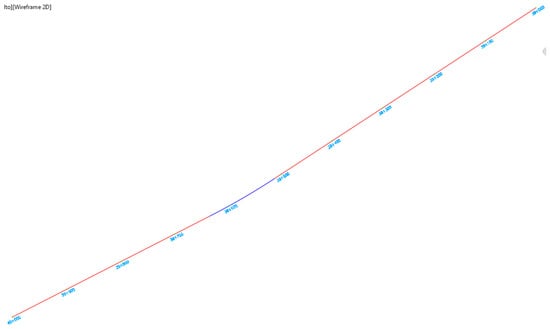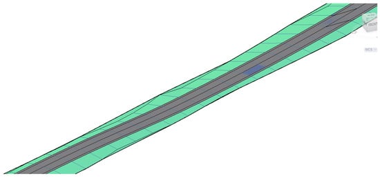 The same selected motorway segment was also processed in Civil3D® to extend the BIM uses of the I-BIM-based maintenance management vision to the intervention design. Taking advantage of the software interoperability, the three-dimensional alignment (Figure 5) and the cross-section of the road defined in Section 4.1 were exchanged between the two environments.