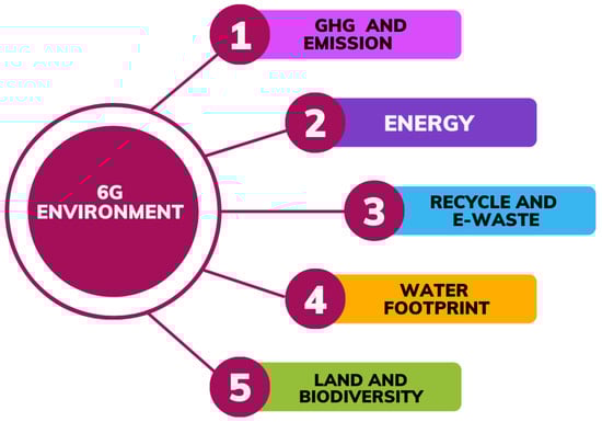 23]. Thus, 6G is able to fulfill not only today’s requirements but also tomorrow’s demand. However, the consumption of energy and its adverse effects on the environment generate a very large issue for its sustainability in the long run. In this paper, we set out to investigate the relationship between technological advancement and environmental sustainability as 6G wireless communication technology has developed. We explore the environmental issues raised by the development, implementation, and use of 6G networks, as well as possible approaches to mitigate these issues and promote a more sustainable future. Furthermore, reducing the environmental impact of 6G technology and promoting resource conservation require sustainable resource management techniques such as ethical sourcing, recycling, and circular economy concepts [