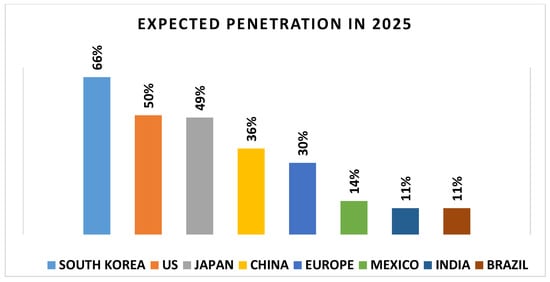 United Kingdom: Many UK mobile network operators began commercializing 5G networks in 2019, with adoption increasing as 5G-enabled handsets became more available. The current 5G penetration rates are 19.3% in England, 7.8% in Northern Ireland, 5.3% in Scotland, and 4.4% in Wales. Everything Everywhere launched the UK’s first 5G service in May 2019 in several major cities and plans to cover the entire country by 2028. O2 has rolled out 5G in more than 180 cities across the UK. The introduction of various 5G phones and the increased adoption of electric vehicles are also driving 5G coverage expansion.