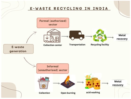 53]. E-waste processing frequently takes place in uncontrolled settings in underdeveloped countries, where rules are lacking and informal recycling procedures are prevalent [
