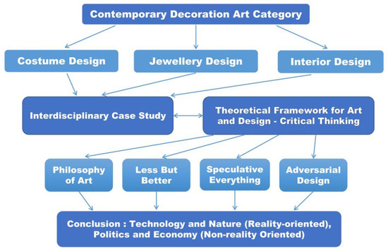 From developing the analytical plan to summarizing findings, this study employs visual aids like charts to articulate the macro, meso, and micro aspects of each field, along with the interdisciplinary nature of contemporary decorative arts, as illustrated in Figure 1.