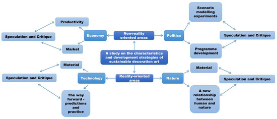 In this study, the sustainable characteristics of contemporary decorative arts and their development strategies are examined from two analytical perspectives. The initial perspective explores a macro-conceptual framework, which also serves as a taxonomy for this subject area. It evaluates the current literature on the concept of sustainability in contemporary art as lacking in representativeness and comprehensiveness, attributing these shortcomings to an unclear initial classification [3,4]. This paper proposes a dual categorization: reality-oriented, which integrates technology and nature with contemporary decorative arts, and non-reality-oriented, combining political and economic aspects with the arts [5,6]. Through methodical case studies, this approach will elucidate the sustainability characteristics and strategies pertinent to contemporary decorative arts [7].