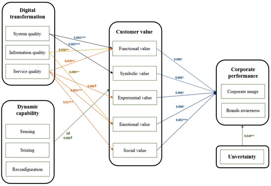 The dynamic capabilities of sensing, seizing, and reconfiguring [8] improve corporate performance through a channel called customer value. Customer value is the evaluation of a product or service based on the expected value generated by its consumption through market transactions. The components of creating customer value through digital transformation can be categorized as functional value, which can provide excellent performance for the price with a safe design and a design that fits the customer’s taste; symbolic value, which can make customers feel that they are receiving special benefits with an attractive and sophisticated image; experiential value, which can provide customers with beneficial, differentiated, diverse, and rich experiences; emotional value, which can put customers’ minds at ease with interesting fun and a lot of joy; and social value, which is a sense of belonging to a certain group or class.