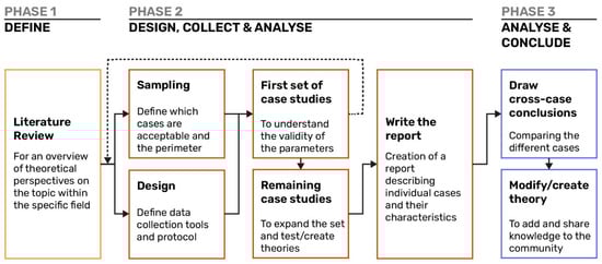 The research process (Figure 1) followed three macro-phases in line with Gray [72] and Yin [74], namely, a first definition phase to understand existing theories and perspectives on the phenomenon; a second phase of design, preparation, and collection, where criteria were defined, and data were collected from multiple sources; lastly, the final phase of analysis, where case data were examined and compared to draw the results. Each step is presented below to ensure understanding and improve the clarity and reproducibility of the research process.
