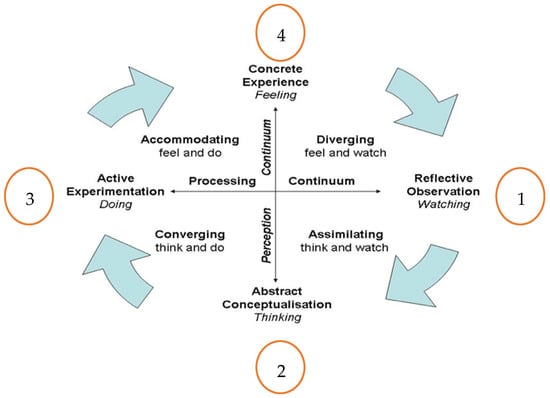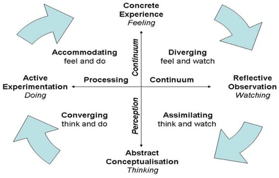 According to Kolb [] and Kolb and Kolb [], the Kolb’s experiential learning cycle (as shown in Figure 1) consists of four components: