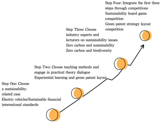 Subsequently, this study has summarized the delivery process of the sustainable curriculum built on green patents, as shown in Figure 4 below: