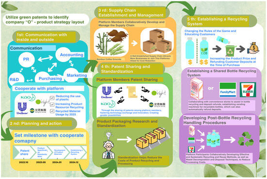 A schematic illustration of the students’ concepts of utilizing green patents to identify “O” company’s product strategy layout.