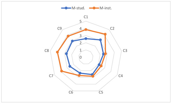 However, regarding the characteristics of assessment practices, there are some noteworthy similarities between participants. Once again, students place little value on any of the characteristics of this experience with emergency online assessment. They are only closer to faculty in relation to characteristic C5 (students may self-assess). This perception of their chance to make judgments about the quality of their own processes and products could be the starting point for the development of self-assessment processes, with adequate training [34].