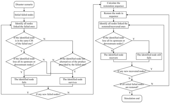 Simulation process of post-disaster CIS failure propagation and recovery.