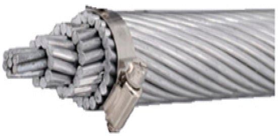 A section of cable reinforced with aluminum conductor steel—type ACSR 300/69 and the general specifications about it—can be noticed in Figure 6.