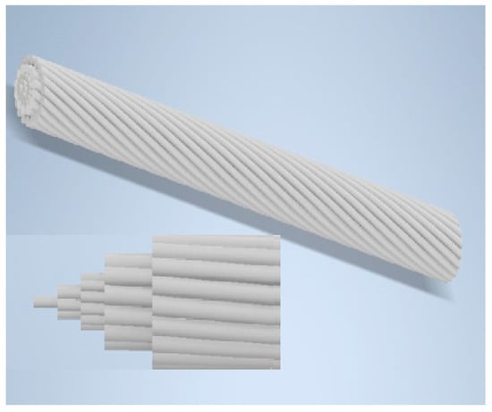 This dedicated cable-analysis component allows the definition of multiwire cable geometries of a maximum of 19 component wires—this limitation does not satisfy our analysis need. The analyzed ACSR conductor has 49 individual components and was modeled according to the technical specifications of the manufacturers on a 1:1 scale with the real one.