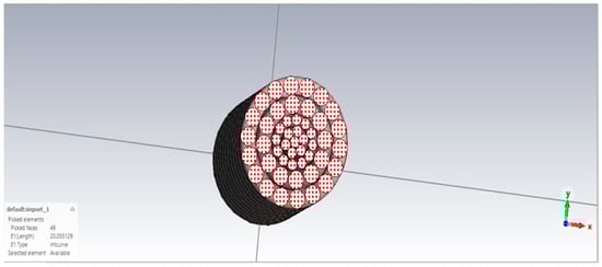 To simulate the field around the ACSR 300/69 conductor, it was initially necessary to create a geometric model of the cable. The geometric scale model of the tested conductor is shown in Figure 5.