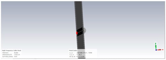 Discretization of the analysis domain was carried out by “adaptive refinement”, a process that helps to reduce the running time and facilitates the optimal running of the program. As can be seen in Figure 8, the domain was structured in 38,380 elements created by the solver automatically.