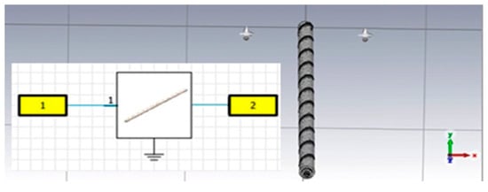 The materials (steel and aluminum) were defined from the material library held by the CST Studio Suite 2023 software, as depicted in Figure 7. The level of twisting of the conductor is considered to be 11 rotations (360 degrees) per linear meter of conductor.