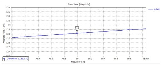 Magnetic field samples 1 and 2 were placed at a distance of 0.5 m and 1 m from the cable, respectively. The graphic layout of the field samples used in the simulation can be seen in Figure 9, where the associated equivalent electrical circuit is presented.