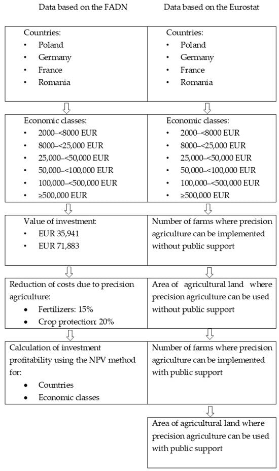This research is of a microeconomic nature and uses data from the Farm Accountancy Data Network (FADN) agricultural accounting. However, they cover large aggregates, such as economic size classes in individual countries; hence, the level of analysis can be considered quite general. The FADN database includes farms representative of the country, type of farming, and economic size classes, and financial data is collected according to a unified methodology. Therefore, despite their generality, the results obtained clearly indicate the differences in the profitability of using precision agriculture.