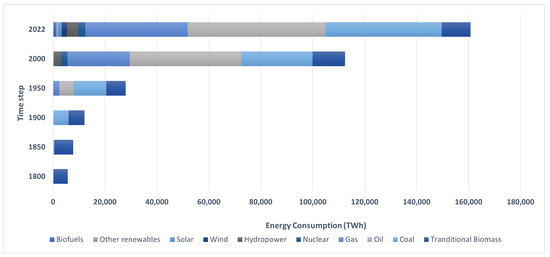 1], the global population is projected to rise to an estimated 14.7 billion in the upcoming eight decades. This rapid growth in population has led to a corresponding increase in global primary energy consumption, soaring from 5961 TWh in 1810 to a staggering 160,764 TWh in 2022 [