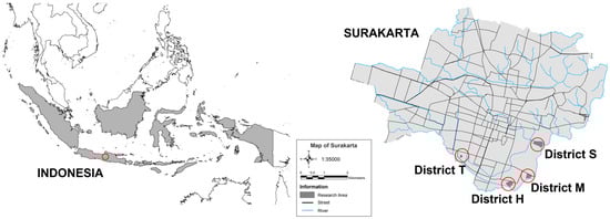 Location of Surakarta City and surveyed districts.