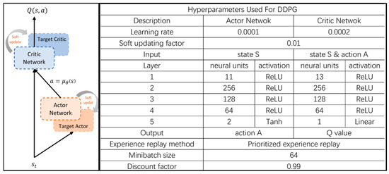 After confirming the critical elements of DDPG, a complete optimal rule-interposing RL was proposed. The structure is shown in Figure 6. The DDPG algorithm’s hyperparameters are demonstrated in Figure 8.