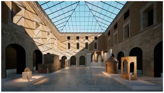 The virtualisation of the cultural pieces favoured the development of competence activities. In being applied to the graphic expression of the cultural heritage, they enhance the understanding of the heritage asset. Moreover, artworks and object artifacts are visualised with interactivity, providing a more immersive and attractive experience [37,38]. In this line, as a first result, elements of different scale or size are virtually documented. This difference was deduced from the obtained results, that is, the validity of the scalable procedure. Figure 9 and Figure 10 show the different elements transferred to the museum scale. To a greater extent of complexity, a second result is related to the design of metaverses using specific software (Twinmotion is a cutting edge real-time architectural visualisation tool (no date). Twinmotion. Recovered on 8 July 2024 from https://www.twinmotion.com/), which are accessed through the use of VR headsets (Oculus) connected to a computer equipment of advanced characteristics. The so-called “yard” is a museum scenario that grants credibility to the objects in a real scale. In this scenario, the user can see the different elements that served as a constructive base for the virtual reconstruction of the Keep of Montilla Castle.