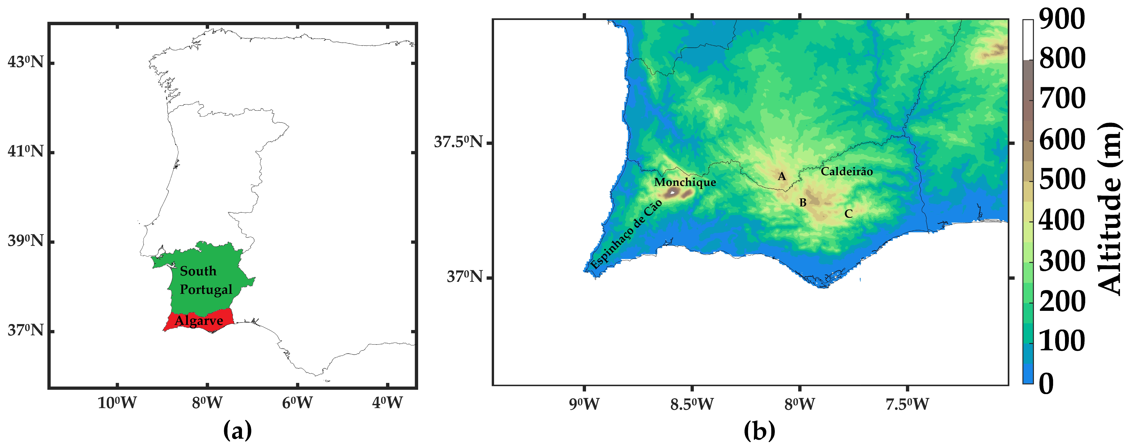 - Serra do Caldeirão. Guia da Cidade. Available online: https://www.guiadacidade.pt/pt/poi-serra-do-caldeirao-17391 (accessed on 25 May 2024).