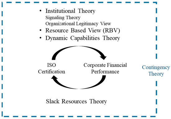 While institutional theory proposes that organizations adopt ISO standards to meet external pressures from stakeholders such as customers, regulators, and investors [42], signaling theory suggests that certification with a management standard may reduce information asymmetries between producers and consumers, especially about underlying supplier attributes, thereby generating a competitive advantage for certified companies [43]. Based on the organizational legitimacy perspective, certification will enhance stakeholder approval and support and improve access to funding [44]. The resource-based view (RBV) suggests that the adoption of ISO Certification can improve a company’s resource base by enhancing its focus on internal resources to identify assets, capabilities, and competencies that have the most potential to provide significant competitive advantage [40,45,46]. Dynamic capabilities theory advises that the adoption of ISO certifications can enhance a company’s dynamic capabilities, such as innovation and adaptability, which can lead to improved CFP over time [47].