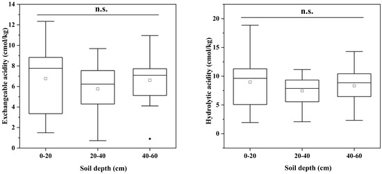 Relationship between exchangeable and hydrolytic acidities of forest soils and soil depth in DLS. n.s. indicates no significant difference.