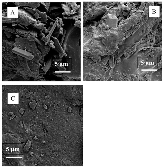 SEM images of biochars (5000×): (A) qBC200; (B) qBC; and (C) BC200.