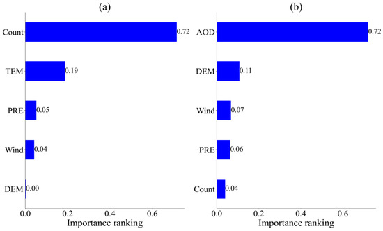 Importance rankings of six variables on PM2.5 from (a) temporal and (b) spatial models.