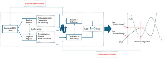 We suspect that this inconsistency likely arises because these perspectives rely on fragmented and isolated viewpoints to address the contradictory effects, raising the need for further investigation. Additionally, the existing findings show excessive reliance on conventional linear regression methods, rendering strategies for ESM utilization effects more arbitrary and less grounded in robust, mathematically validated evidence. Instead of proposing whether ESMU is more positively or negatively affecting individuals, or alternatively, holding linear assumptions about its impact, we aim to identify an equilibrium point within the fluctuating imbalance between efficiency and well-being. By identifying this equilibrium, it is possible to enable individuals to feel that using ESM for work activities is effectively beneficial while keeping negative feelings such as exhaustion below a critical threshold. This approach, in turn, would significantly facilitate ESM implementation towards a more sustainable future.