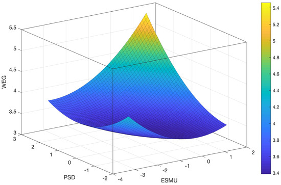 Conversion to Mathematical Formulation: We translated the contradictory effects into a mathematical model, incorporating variables ESMU, PSD, WEG, and WEH to address the research problem. Specifically, we sought to identify what conditions between ESMU and PSD would generate high WEG and low WEH simultaneously.