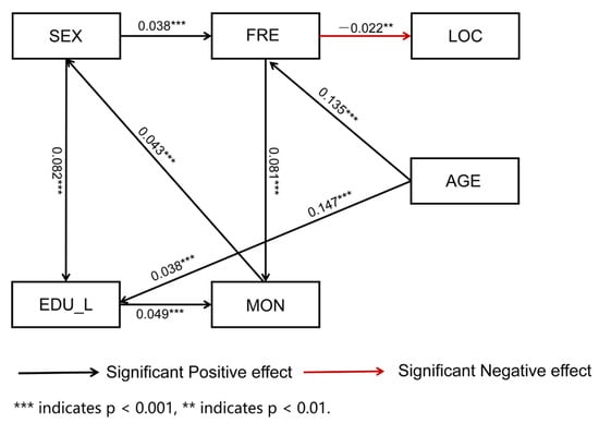 Overall, the SEM test results were broadly consistent with those of the mixed BN key network and multiple SEM subgroups, suggesting a stable causal relationship between the factors. Self-learning motivation was mainly related to gender and age in students’ personal characteristics, to education level in students’ academic characteristics, and to the school area’s geographic location in the academic environment variables. Learning-incentive money had a significant positive effect on self-directed learning motivation for different gender groups; more specifically, it was not related to the school area’s geographic location in the women’s group, whereas it had a negative correlation with it in the men’s group. Among groups with different education levels, the self-learning motivation of students with specialized degrees had a negative correlation with the school area’s geographic location, whereas the online search frequency of students with bachelor’s degrees was not related to the geographic location of their school area. These findings help to improve the understanding of college students’ motivation for online self-directed learning and recognize the future role of online educational environments in promoting health. Based on the study’s findings, future online education platforms can offer personalized learning incentives tailored to students’ gender, age, and educational background, thereby enhancing their self-directed learning motivation. This study not only expands the current understanding of how demographic characteristics, economic incentives, and educational factors influence learning motivation, providing a foundation for further research in educational psychology and online learning, but also contributes to the sustainable development of online education in a globalized context.