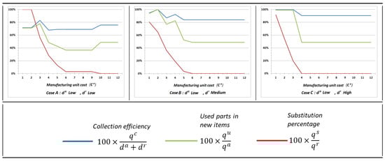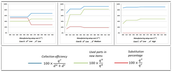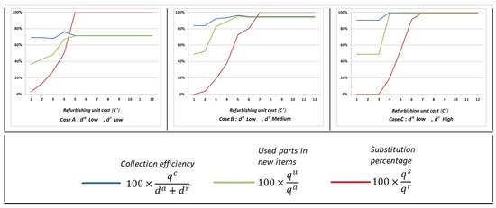 The numerical experiments above show that integration through the sharing of inventories of returns leads to considerable cost and environmental benefits. The presented simulations indicate the relationship between the variation of parameters and their impact on cost and environmental indicators. This will allow the decision to identify the range of parameters within which substitution is effective. We have noticed, for example, that the environmental and cost indicators are very sensitive to variations in refurbishing costs.