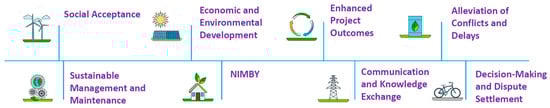 Heuninckx et al. [9] have highlighted the importance of inclusive and participatory decision-making processes. Torma and Aschemann-Witzel [10] have shown that early and transparent engagement with stakeholders can enhance project acceptance, minimize conflicts, and build trust among stakeholders. Moreover, engaging with local communities and other affected parties helps identify and address potential social, environmental, and cultural concerns associated with renewable energy development [11].