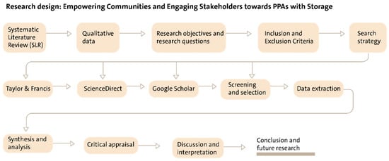 Clarifying the research objectives and research questions derives from this paper’s aim. The aim of this study is to undertake a rigorous SLR to delve into the pivotal role that community engagement and stakeholder involvement play in shaping the contours of hybrid PPAs, which amalgamate renewable energy with storage technologies. Through a comprehensive synthesis of the previous literature, this research aims to elucidate the nuanced dimensions and consequential benefits inherent in cultivating robust deals. The research questions in alignment with the objectives that guided the authors through this aim were formulated as follows: