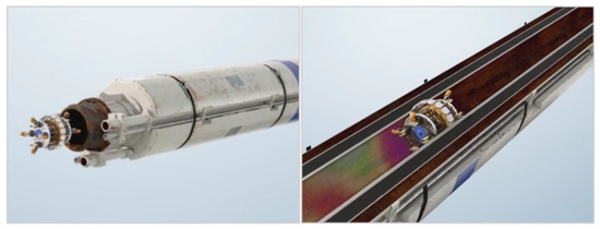 The detector exhibits high flexibility, allowing it to inspect horizontally stacked risers at onshore bases using a winch. It can also be lowered from offshore platforms using a crane to perform in situ inspections of operational risers. Figure 5 shows the specific posture of the robot as it enters the riser and conducts inspections inside the pipeline.