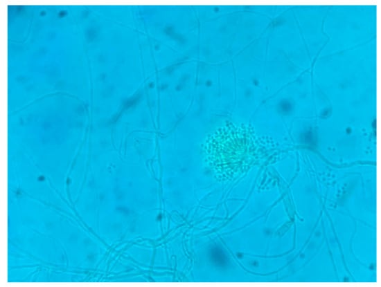 The plastic remains used as samples were obtained from the municipal landfill of the El Milagro population center, Trujillo, Peru; they were placed in sterile containers and labeled for transport to the Cesar Vallejo University laboratory. Small fragments of the plastic sample were placed in tubes with 10 mL of Sterile Physiological Saline Solution (SSFS), from which 100 µL of the suspension was extracted and surface-sown on plates with potato dextrose agar (PDA) supplemented with Chloramphenicol. These plates were incubated at 28 °C for five days [29]. Then, the fungi were replicated in PDA for identification by comparing their morphology and fungal structure with the taxonomic keys of Barnett S. A.’s guide (1972) [30], as shown in Figure 2.