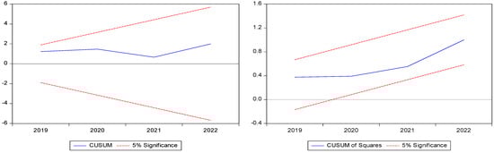 The analysis has shown that all four models maintain stability with a high level of confidence, specifically within a 5% interval. This stability is clearly depicted in Figure 1, Figure 2, Figure 3 and Figure 4, which visually underscore the reliability and robustness of the models over the short run. These findings not only confirm the models’ soundness but also establish a solid basis for their use in making predictions and applying them effectively within the given context. The consistent stability across models reassures us of their validity and enhances their utility in decision-making processes.