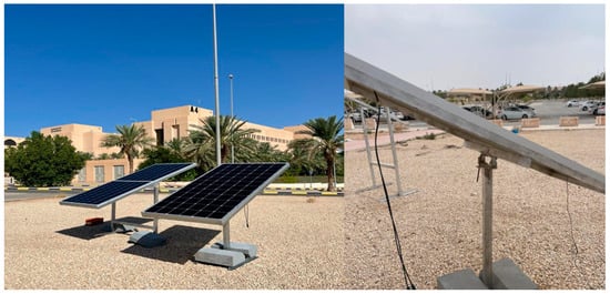 The PV modules used in the study were made of monocrystalline Silicon PERC and their main characteristics are provided in Table 1. These modules were fixed with a standardized mounting system at the tilt angle of 26.34° in the south direction. The modules were elevated at 1 m above the ground as shown in Figure 2.