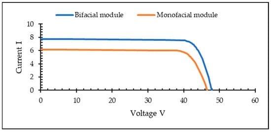 The bifacial module exhibited superior electrical performance relative to the monofacial module under both high and low irradiance conditions on a cloudy day. This superiority is characterized by the higher short-circuit current, open-circuit voltage, and maximum power output values. These results highlight the potential benefits of bifacial technology in real-world settings where inconsistent irradiance is common.
