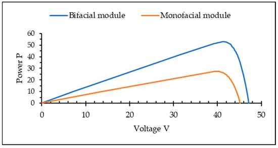 The photovoltaic modules generate electricity from a specific range of light frequencies and cannot cover the whole solar range of infrared, ultraviolet, and diffused light. Hence, much of the striking sunlight energy is wasted by the solar modules; therefore, the energy and exergy analysis were determined for the performance of a solar photovoltaic module [3]. In the exergy analysis, both exergy efficiency and exergy destruction highlight the energy inefficiencies in a system and provide useful information to the decision-makers for prioritizing the improvement potential. Exergy analysis is generally an applicable method for the comparison of alternative processes for a given purpose. Exergy analysis uses the thermodynamic strategy to evaluate and improve the system’s efficiency so that exergy destruction can be used to optimize the economic performance of the systems [13,14]. Additionally, Raina and Sinha [15] conducted a comparative study concerning monofacial and bifacial cells in the same conditions. Singh et al. [16] used simultaneous front and rear side illumination in their study, which is also called bifacial illumination, for characterizing bifacial PV modules using standard monofacial (indoor current–voltage measurements taken from the front and rear sides of the bifacial module, whereas the other side was protected by a non-reflecting black cover [16].