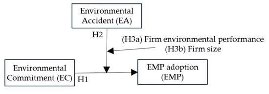 Follow-through in the study is measured as increases in the number of environmental management practices (EMPs) a firm adopts. EMPs, such as revising processes, conducting audits, and changing supplier selection criteria, are the operational changes firms make to improve environmental performance. Adopting EMPs is thus how a firm would follow through on an environmental commitment. Further, since EMP adoption is directly associated with environmental performance (e.g., [,,,,]), it is a proxy for, and leading indicator of, environmental performance. Using a novel panel dataset compiled from multiple sources and representing 442 public U.S. manufacturing firms, we find that firms generally follow through on an environmental commitment, whether the commitment is to reduce resource consumption or reduce hazardous emissions. We next evaluate the robustness of an environmental commitment by testing whether firms follow through after experiencing an environmental accident (EA). EAs damage a firm’s reputation [], increasing pressure to make a commitment to bolster their reputation. However, EAs require often-significant capital and labor resources for clean-up and fine payment [], which may impact a firm’s ability to follow through. Results show that firms tend not to follow through on a commitment should they have recently experienced an EA. This suggests that commitment quality depends on the contextual conditions at the time of the commitment. Finally, we evaluate two firm attributes that may promote follow-through, even after an EA: firm environmental performance and firm size. Good environmental performers have better environmental reputations and thus more to lose should they fail to follow through on a commitment. Larger firms are more visible to stakeholders and possess more resources. Visibility would increase reputational pressure to follow through and resources could address resource constraints caused by an EA. The results support both proposals, i.e., better environmental performers and larger firms are more likely to follow through on an environmental commitment, even after an EA. The conclusions are robust to endogeneity, econometric method, and an alternate approach for measuring EMP adoption.